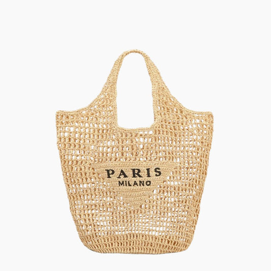 Dam Strandväska Vävd Polyester och Halm Material