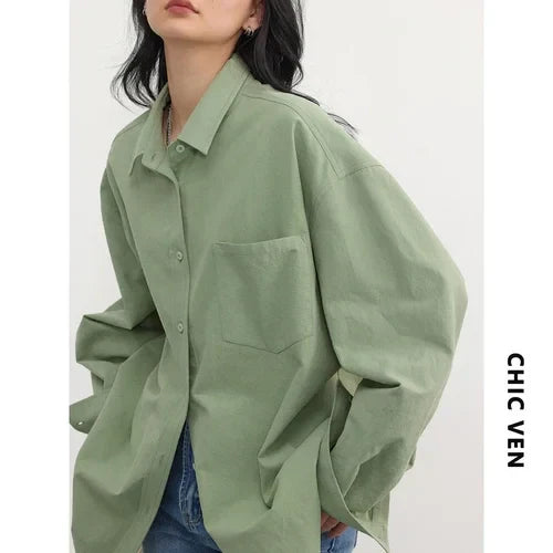 Dam Blus Överdimensionerad Lätt Tyg med Bröstficka