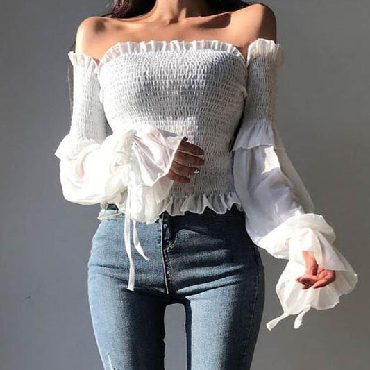 Dam Blus PuffÀrmar PÀrldetaljer LÀtta Material