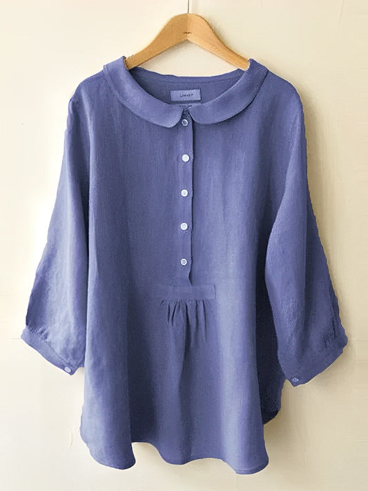 Dam Blus Löst Linne CirkulĂ€r Halsringning TrekvartslĂ„nga Ărmar