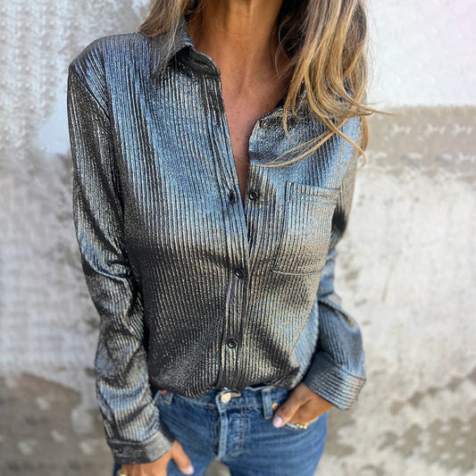 Dam Skjorta Sammet Klassisk Stil Elegant Mjuk 100% Polyester