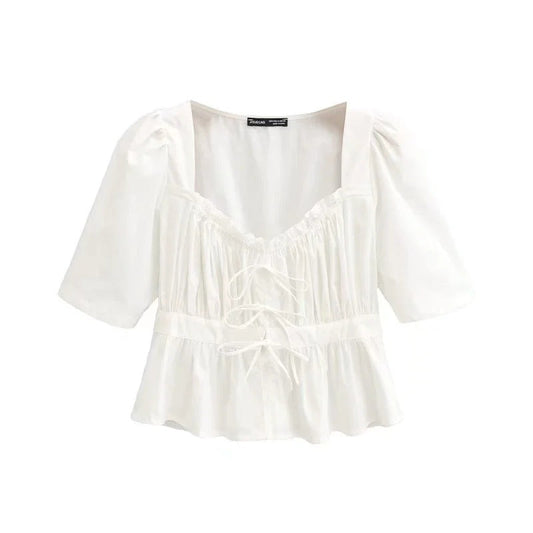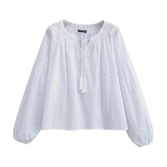 Kvinnors Wrap-Blus Puffiga Ărmar Bomullsblandning