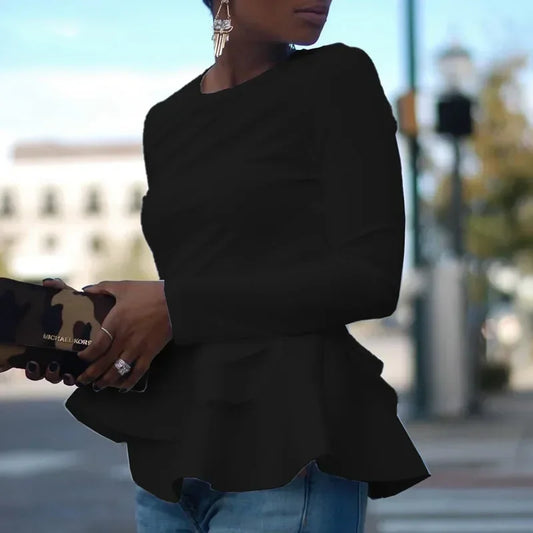 Dam Blus med Ruffles Långärmad Polyester och Spandex