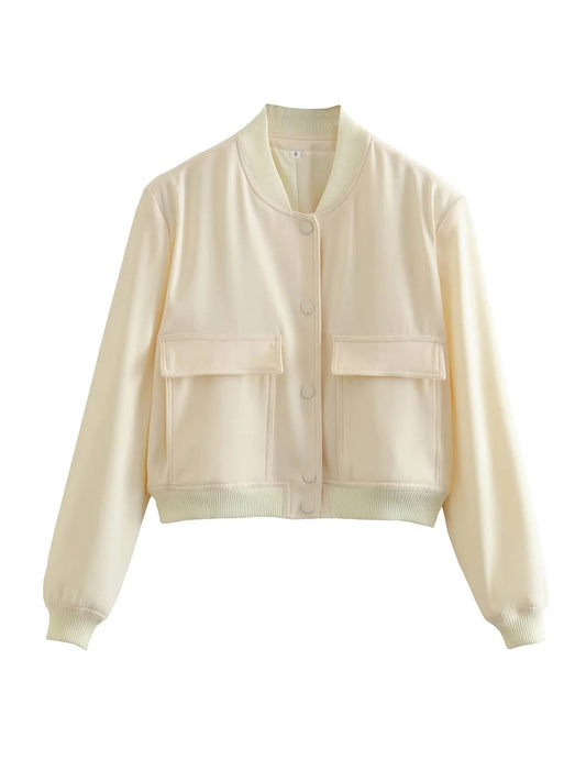 Damjacka Bomber Trendig Polyester med Knapplist