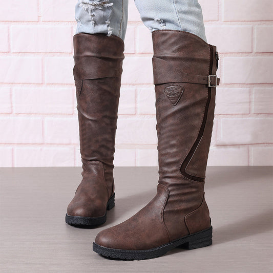 Dam Läderstövlar Med Lång Blixtlås Platt Häl Casual Fashion