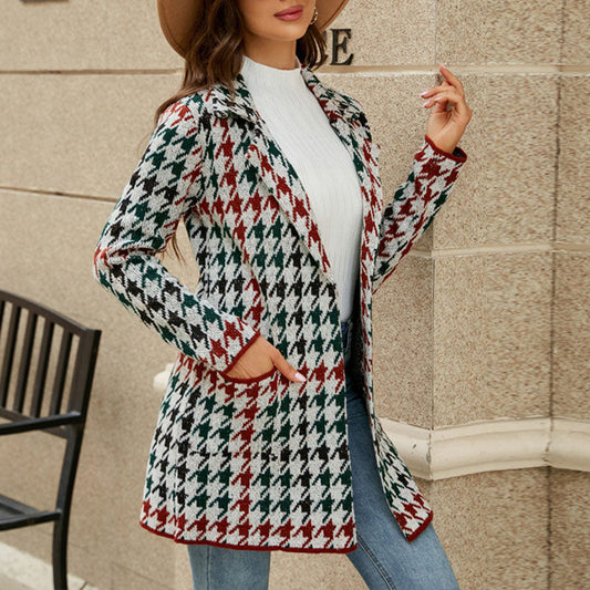 LÄng Kofta Dam Stickad Polyester och Bomull Casual Cardigan