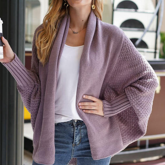 Kvinnor Lång Kofta Dolmanärmar Stickad Material