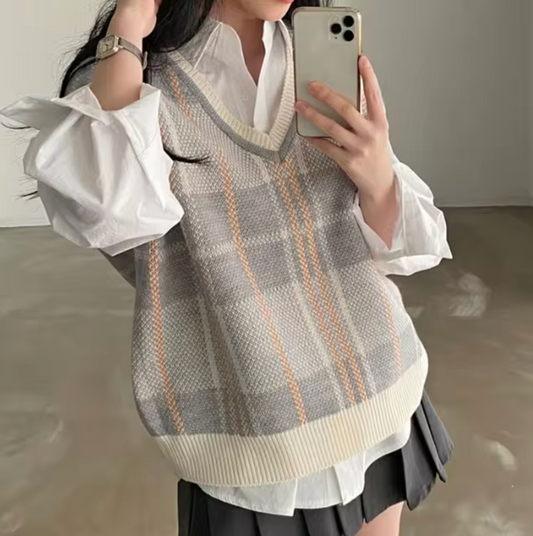 Dam Stickad VÀst V-ringning Mjuk med Diamantmönster