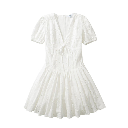 Fina Dam Klänningar Puffärmar Lätt Tyg Elegant Design
