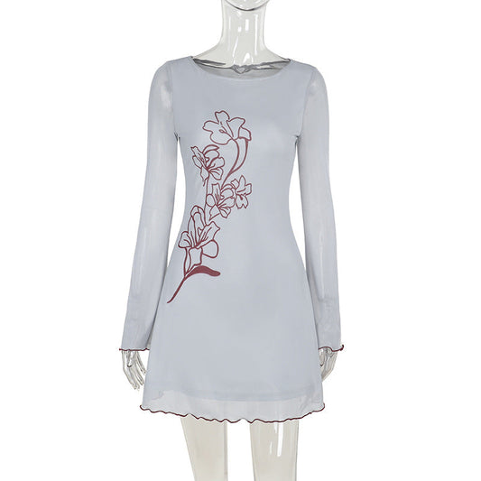 Kvinnors Fritidsklänning Blommönster Långa Ärmar Andningsbart Material
