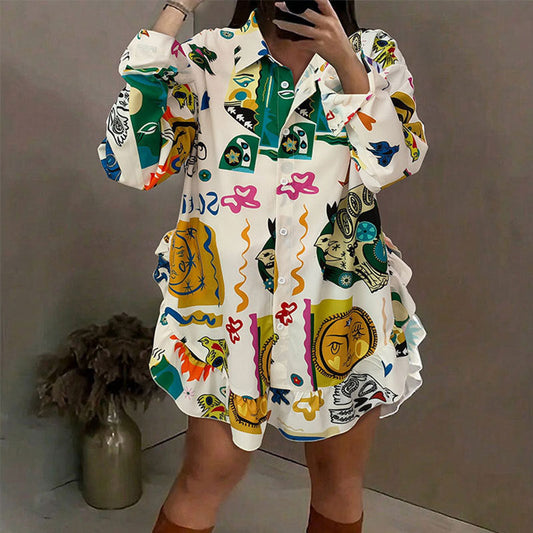 Skjortklänning Dam Färgglad Rüsch Detaljer Andningsbart Tyg