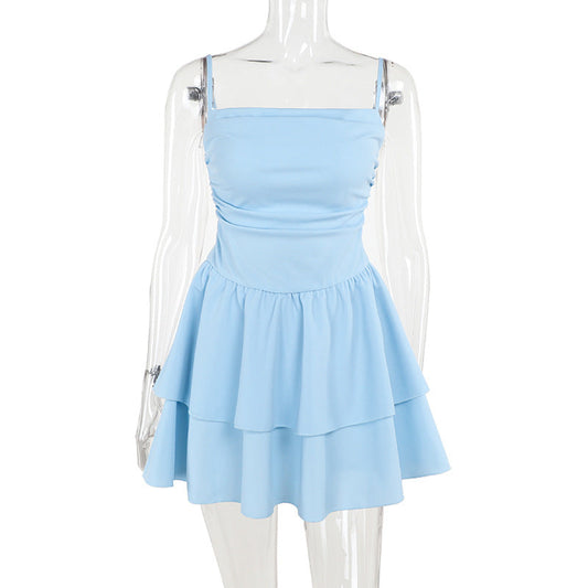 Damklänning med Volang Justerbara Bärar Mjukt Tyg