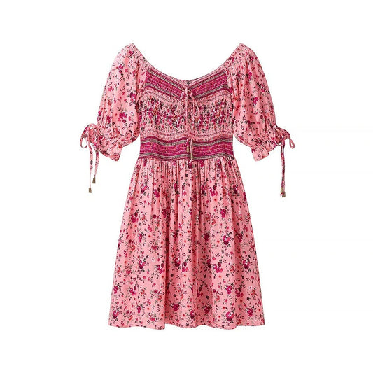 Damklänning Bohemisk Stil med Blommönster Lätt Tyg
