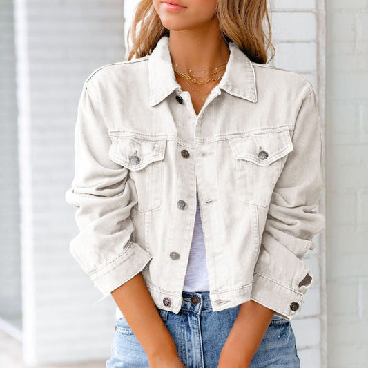 Dam Denimjacka Klassisk Vintage Design Mjuk Denim