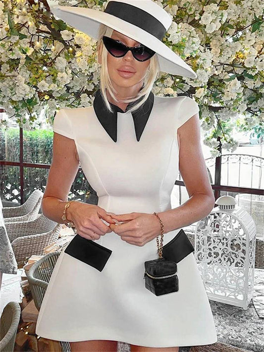 Kvinnors Långärmad Klänning Färgblockad Elegant Högkvalitativ Blandning