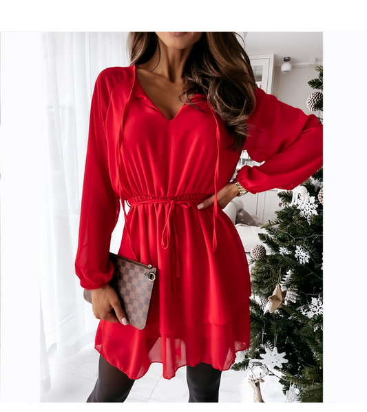 Damklänning Plisserad Konstnärlig Design Högkvalitativt Tyg