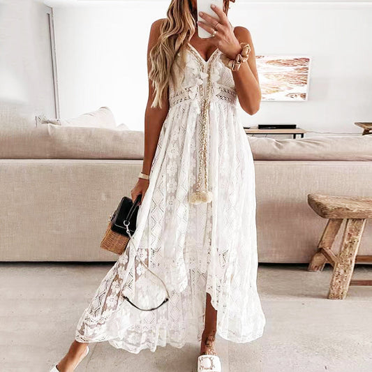 Dam Sommarklänning V-Neck Spets Polyester för Bröllop och Fest