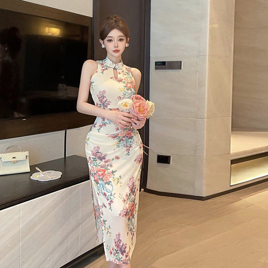Kvinna Cheongsam Klänning Hög Slits Tüll Bodycon