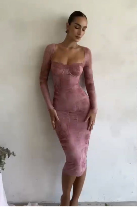 Kvinnors Bodycon Klänning V-ringad Spets Högkvalitativt Tyg