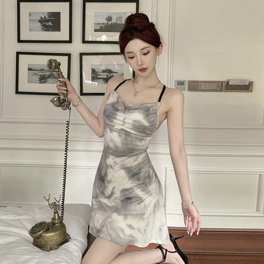 Kvinna Kort Klänning Spaghetti Band Polyester Fyrkantig Halsringning Ärmlös