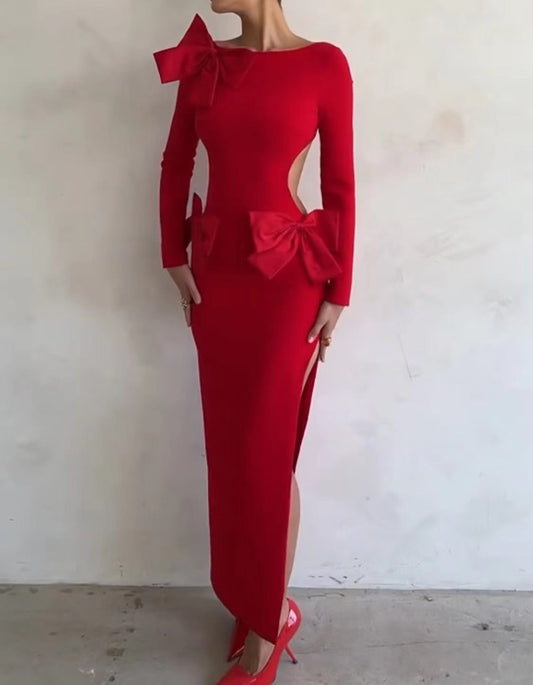Dam Långklänning V-Hals Luftigt Tyg för Fest och Bröllop