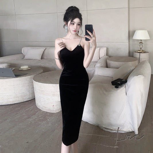 Damklänning Midi V-ringning Sammet Fina Dam Klänningar