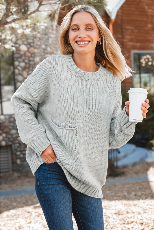 Stickad Dam Tröja Rund Halsringning 100% Bomull Tidlös Design