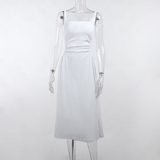 Dam Midiklänning Spaghettirem Elastisk Midi Klänning