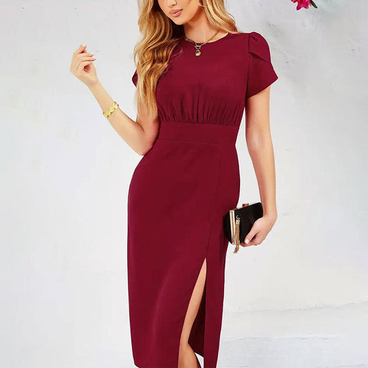Dam Klänning Midi Puffärmar Andningsbart Tyg Hög Slits