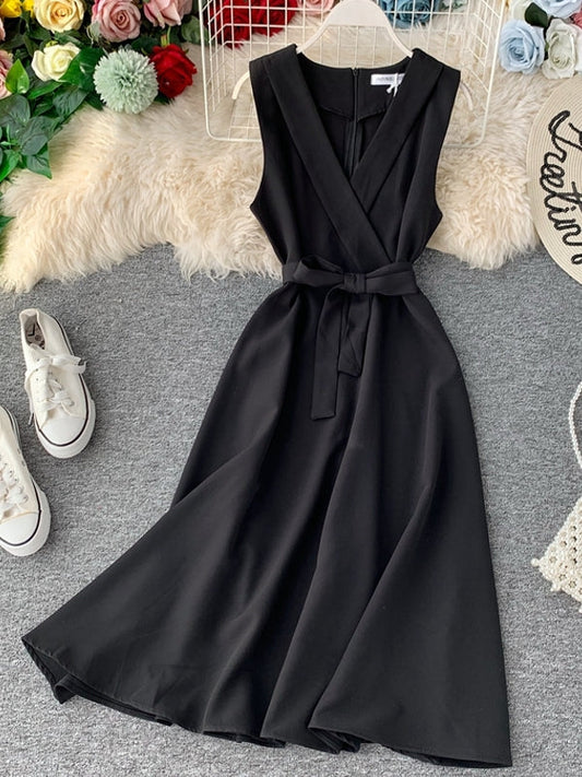 Dam Klänning Midi V-ringad Ärmlös A-linje Polyester