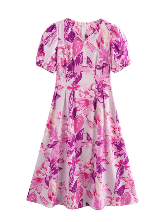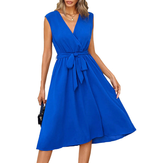 Fina Dam Klänningar Midi Blommig V-ringning Ärmlös A-Linjeformad