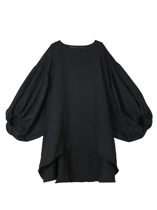 Kvinnors Miniklänning med Puffärmar och Djup Halsringning Lätt Tyg