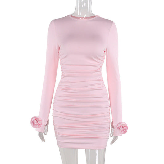 Kvinnors Miniklänning Lång Ärmar Rufflad Elastisk Tyg