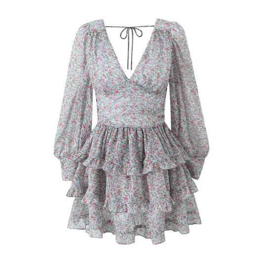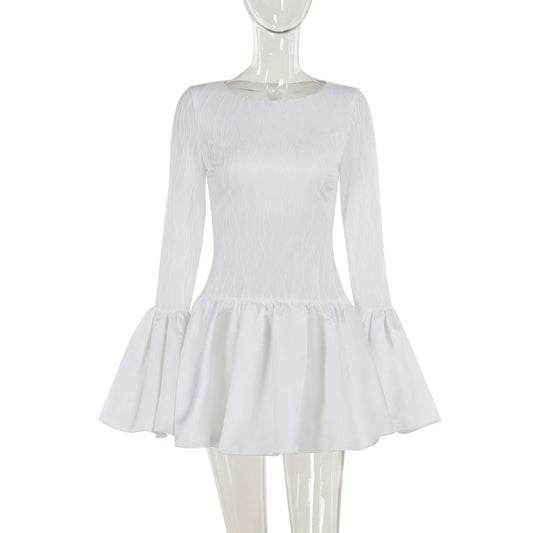 Kvinnors Miniklänning med Klockhylsor och Strukturerad Topp i Högkvalitativt Tyg