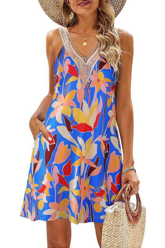 Kort Klänning Dam A-Linjeformad Tropiskt Tryck för Sommarfest