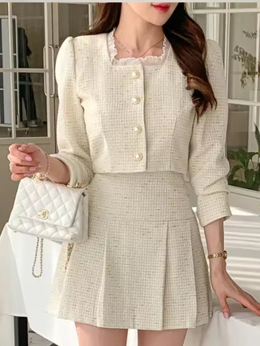 Kvinnors Tweedjacka Set med Skräddarsydd Minikjol Polyester