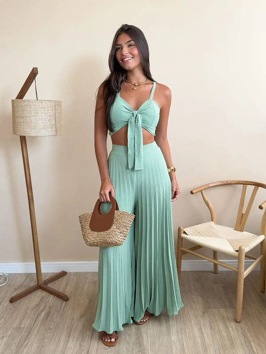 Tvådelat Set Dam Bred Ärmar V-Ringning Bomull Linne