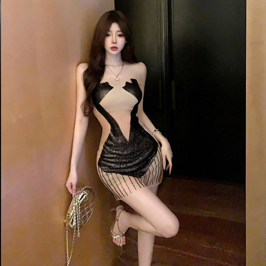 Kvinnors Mini Klänning Spaghetti Band Paljetter Polyester