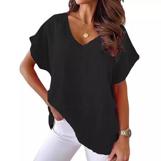 Dam Topp V-ringning KortÀrmad Bomull för Avslappnade Dagar