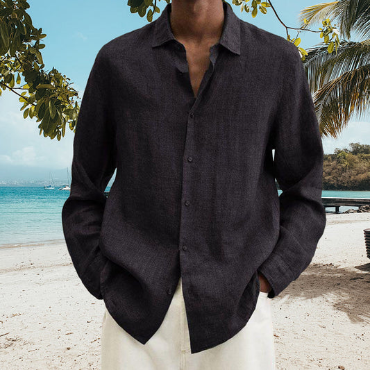 Herrskjorta LÄngÀrmad Avslappnad Bomull och Linne