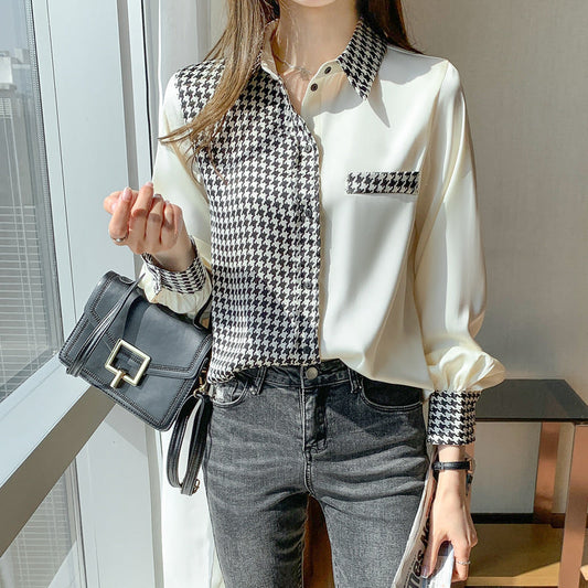 Dam V-ringad Blommig Skjorta LĂ„nga Ărmar Polyester