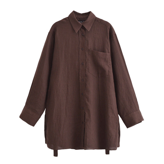 Damer Ăverdimensionerad Skjorta med SlĂ„ende Krage och Fickor Viskosblandning