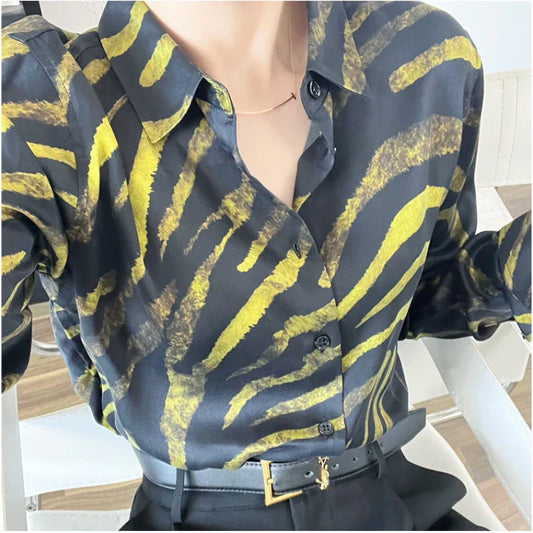Dam Skjorta Randig Siden Polyester LÄngÀrmad