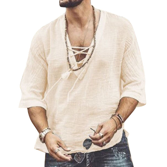 Herrskjorta Avslappnad Bomull Djupt Skuren Krage