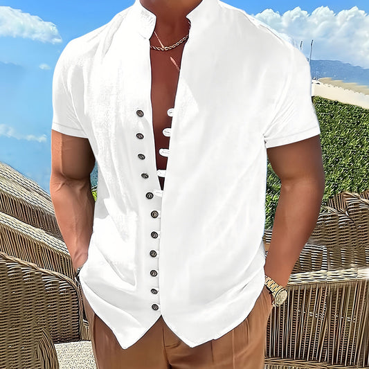 Herrskjorta Kortärmad Ståkrage Bomull Avslappnad Stil