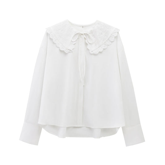 Dam Skjorta Lekfull Design Bomull - Vit Blus för Vardags och Fest