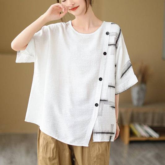 Kvinnors Skjorta Fågeltryck Av Linnematerial