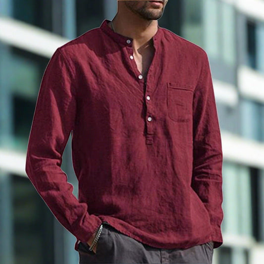Herrskjorta LÀtt Lin Avslappnad Stil Med Bröstficka