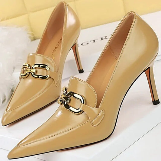 Kvinnors Höga Klackar 8 cm Syntetiskt Läder Med Metallspännen