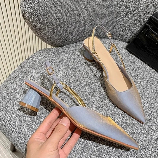 Dam Pump Skor Pekad TĂ„ Flock med Metalldekoration